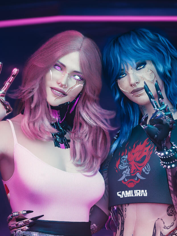 Born in 2047 in the slums of Watson, Lynx was always a special case. Her mother, Celeste, was an awful woman. She worked as a Joy Toy to put food on the table, blaming Lynx for the loss of her father as well as the reason she was stuck in a rundown apartment, locked in a miserable job. From the age of three to seventeen, Lynx was coached into becoming the perfect woman. She was taught to always please a man, even if it meant giving up a piece of herself in the process. She was quiet, reserved and harbored guilt and pain beyond belief.Upon turning seventeen, Lynx was forced onto Jig Jig Street by her mother, efficiently breaking her daughter into helping provide for their household. She spent every night doing what she needed to do, earning scratch and slowly attaching herself to the façade personality that she created. She became loud, bubbly, and full of life, always having a grin on her face. This was also when she began to display signs of obsession, psychosis and general darkness.It was whenever she met a man, a man she'd lovingly called her puppy. He was a loyal client, always coming to see her and showering her in attention that no man had ever wanted to show her. She began to get attached, sinking her claws deep into him in an effort to keep him around. She abandoned her job, she stayed with him whenever she could, she broke down her walls for him. Then one day, he vanished. No explanation meant one thing; she wasn't enough yet again. This caused her to further spiral. Not even a month after the sudden disappearance as well as a psychotic break, she was forced to work once more, fully escaping her mother's clutches and finding an apartment for herself.She had managed to pull her life together, never getting attached to clients again out of fear of being abandoned. There was a night whenever she was walking back to her apartment, being corned by a man in an alleyway who tried pursuing her. Whenever she'd shut it down, there was a violent attack. Her throat was flayed, vocal cords severed. Her eyes were gouged out with the use of a dull, rusty knife. Her arm was cut off using that same rusty blade, taking hours of excruciating pain. She was found by a good Samaritan of sorts, being rushed to the ripper doc with limited time to survive.She'd been patched up, given full upgrades for each thing she lost. She gained pink kiroshi eyes, a beautifully crafted cyberneck, as well as a cyberarm. This didn't seem to help with her psychosis, furthering her deeper into her troubled spiral. It didn't help that Kei, the Tyger Claw that took everything from her, always haunted her. He was everywhere she looked, never getting an ounce of peace knowing that he could always finish the job.
